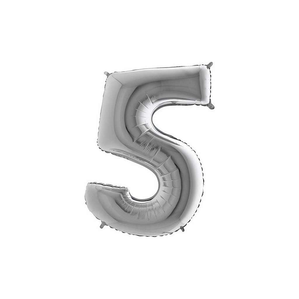 Balónek fóliový číslice 5 stříbrná 105 cm