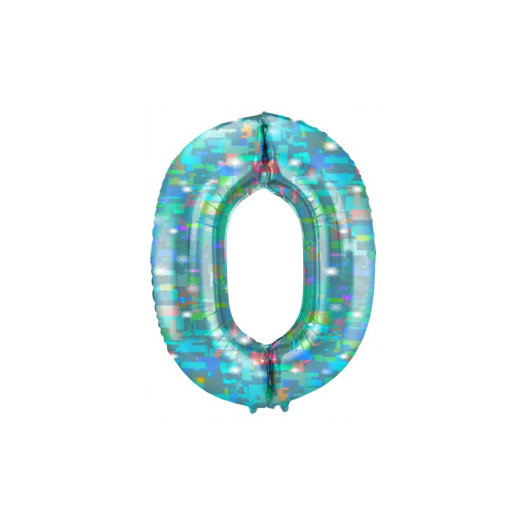 Balónek fóliový číslice 0 Galactic Aqua 101 cm