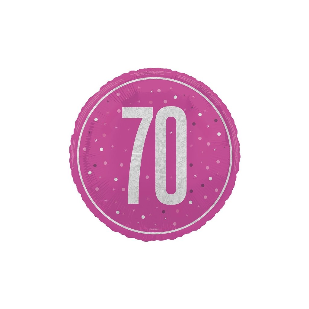 Fóliový balónek s číslem 70 Třpytivý růžový balónek je vhodný nejen jako doplněk výzdoby jubilejních 70.narozenin, ale určitě potěší oslavence také jako dárek. Velikost 46 cm Balónek lze plnit vzduchem i héliemDoplňkové parametry