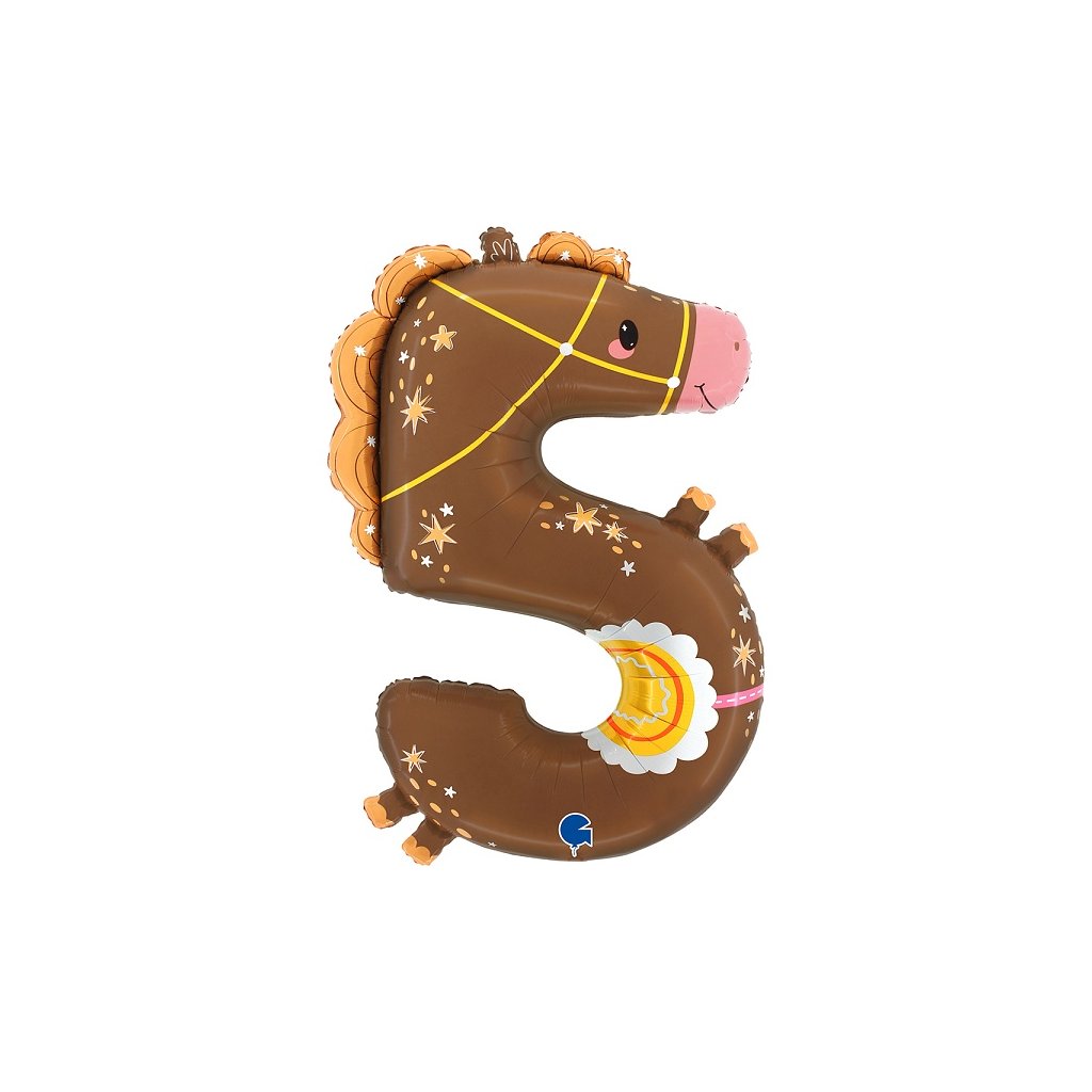 Balónek fóliový číslice 5 koník 89 cm