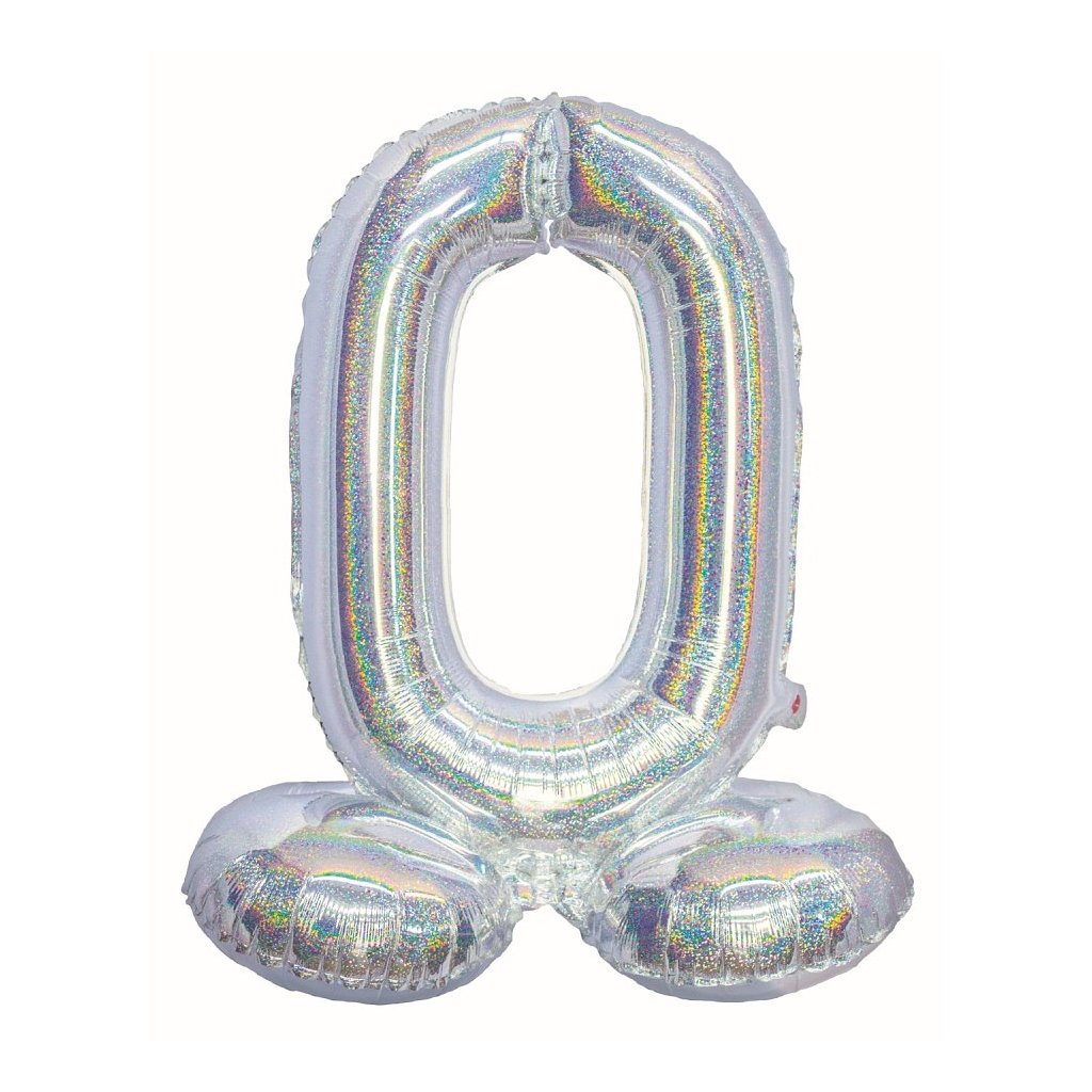 Balónek fóliový číslice 0 samostojná holografická stříbrná 72 cm