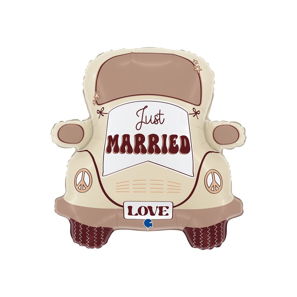 Fóliový balónek ve stylu hippie svatebního auta Balónek má potisk Just Married a upoutá pozornost včech přítomných hostů. Bude dokonalým středobodem svatební hostiny. Velikost 66 cm Lze plnit vzduchem i héliemDoplňkové parametry