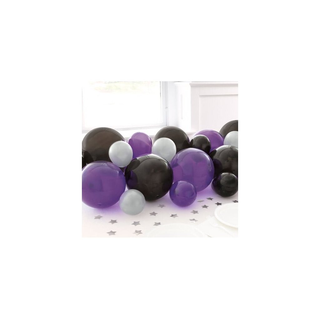 Balónková girlanda na výzdobu černo-fialová s konfetami Hezký doplněk výzdoby na čarodějnickou nebo halloweenskou párty. Obsahuje: 10 x latexové balónky velikosti 23 cm 10 x latexové balónky velikosti 13 cm 1 x plastový závěsný pásek - 91,4 m 1 x konfety z fólie ve tvaru hvězdy - 5 g Balónková girlanda se dodává se všemi komponenty k sestavení doma. Není potřeba hélium.Doplňkové parametry