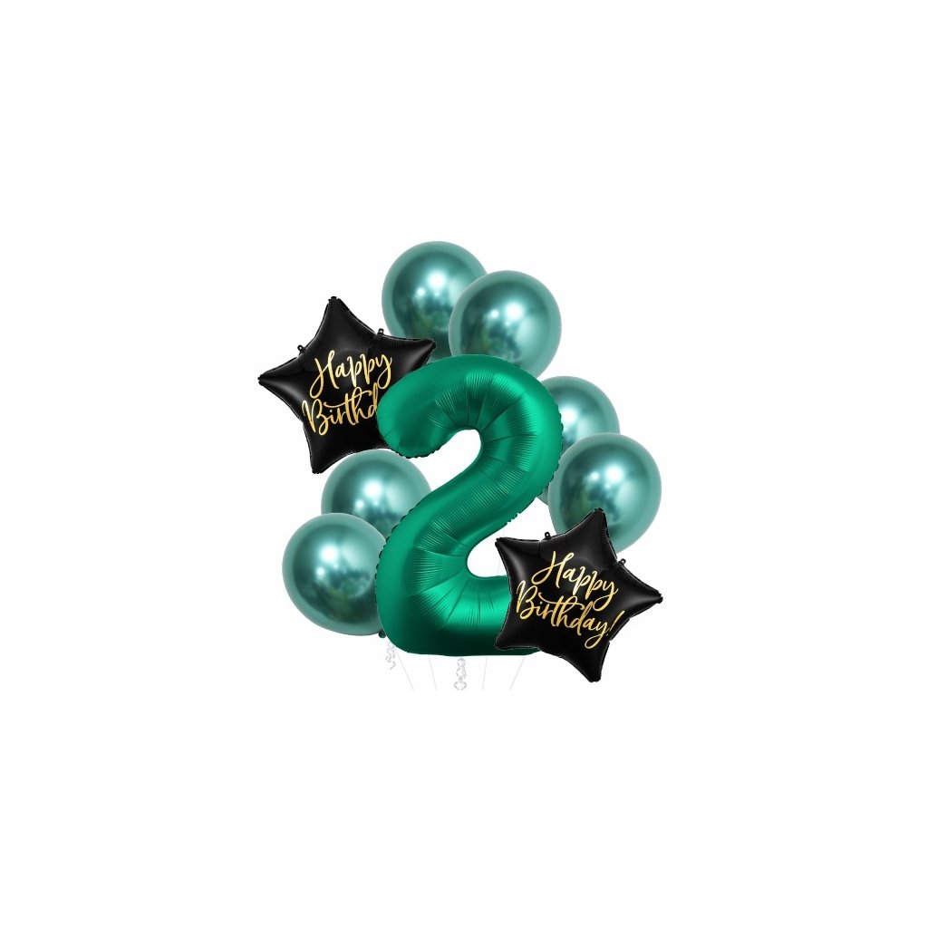 Balónkový buket s chromovými balónky na výzdobu 2.narozenin a s nápisy Happy Birthday zelený Set obsahuje: 1 x fóliový balónek číslo 2 zelené barvy výšky 86 cm 2 x fóliový balónek černé barvy ve tvaru hvězdy se zlatým nápisem Happy Birthday 6 x latexový balónek 30 cm chromový zelený Tato narozeninová balónková kytice v luxusním chromovém provedení je tím pravým překvapením pro oslavence i jeho hosty. Kombinace chromových balónků je vhodná jako dekorace na oslavu i jako dárek pro oslavence. Lze plnit vzduchem i héliemDoplňkové parametry