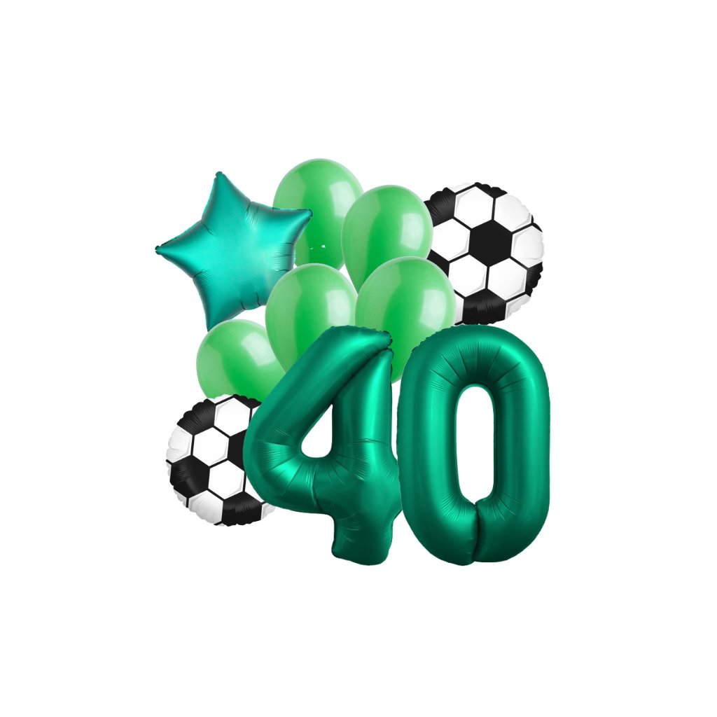 Balónkový buket „Fotbalová oslava“ 40 narozeniny – zelený chrom & 3D míče Perfektní gól pro každého fotbalového fanouška! Tento luxusní balónkový buket je připraven zazářit na narozeninách i sportovní párty. Dominantou je obří číslice 40, 86 cm v zeleném chromu, doplněná dvěma 3D fóliovými míči, fóliovou hvězdou v zeleném chromu a šesticí latexových balónků v ladících odstínech. Skvělá volba pro narozeninovou oslavu, sportovní event nebo překvapení pro malého i velkého fotbalistu. Díky kombinaci chromového lesku a 3D efektu míčů působí dekorace luxusně a zároveň hravě. Balónky doporučujeme naplnit heliem a uvázat do buketu . Skvělý dárek nebo výzdobaDoplňkové parametry