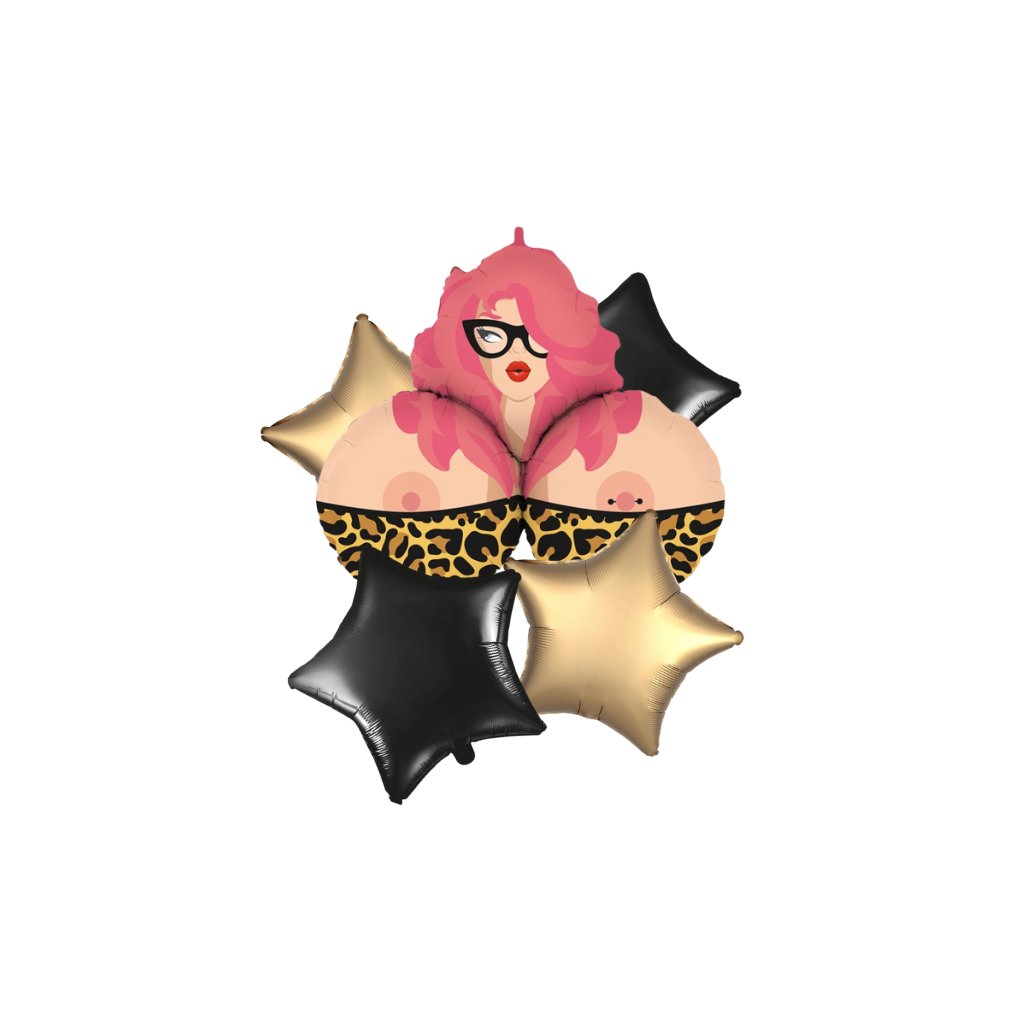 Humorný balónkový set, který pobaví na první pohled! Ideální jako vtipný dárek pro oslavence, který má slabost pro ženské křivky. Skvělé na narozeniny, rozlučky se svobodou nebo pánskou jízdu. Sada obsahuje: • 1× fóliový balónek Sexy žena (89 cm) • 2× fóliový balónek hvězda černá (48 cm) • 2× fóliový balónek hvězda saténově zlatá (46 cm) Balónky lze nafouknout vzduchem nebo héliem – po nafouknutí héliem se vznášejí. Stuha a těžítko nejsou součástí balení – doporučujeme je zakoupit zvlášť. Najdete je na našem e-shopu.Ideální pro kamaráda, bratra nebo kolegu se smyslem pro humor! Zaručeně vykouzlí úsměv.Doplňkové parametry