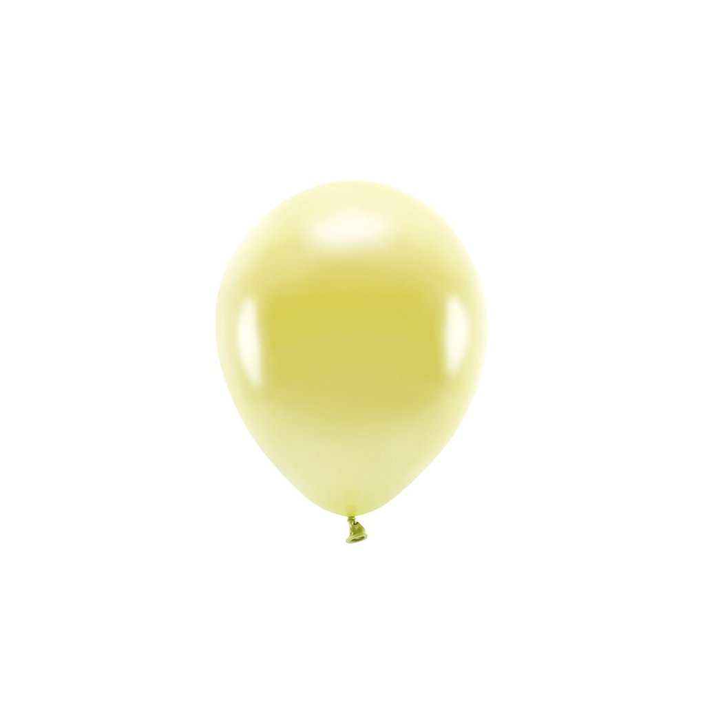 Kvalitní Eco balónky latexové metalické ve světle žluté barvě Balónky jsou vhodné pro nafukování vzduchem i heliem velikost 30 cm Balení obsahuje 10 ksDoplňkové parametry