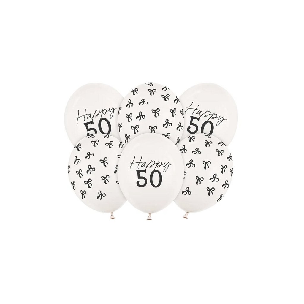 Balónky latexové "Happy 50" s mašličkami 30 cm 6 ks