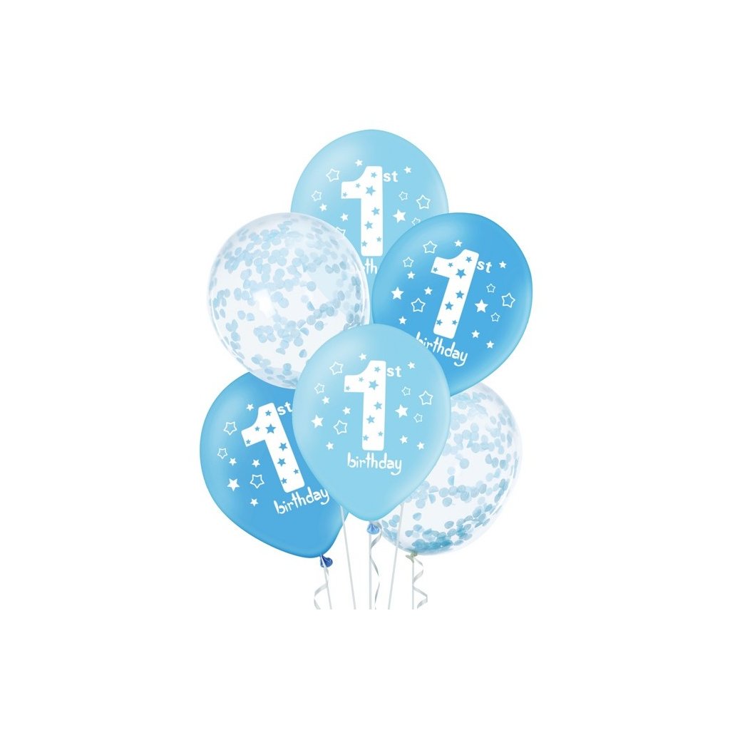 Balónky latexové 1. narozeniny mix modré 30 cm 6 ks