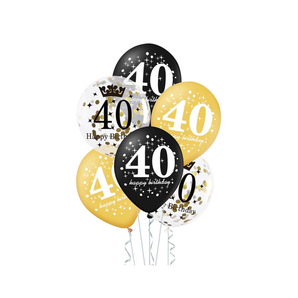 Balónky latexové 40. narozeniny černá/zlatá mix 30 cm 6 ks