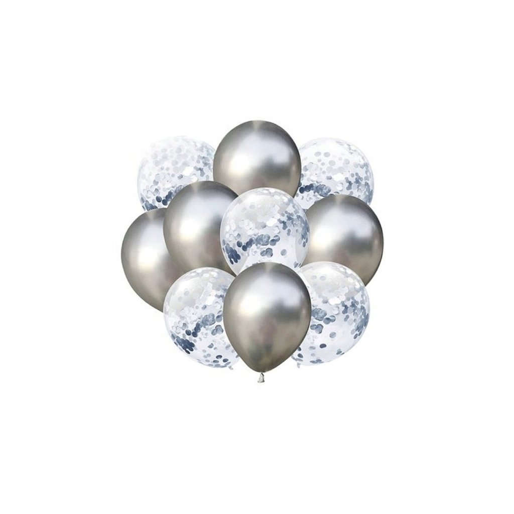 Balónky latexové chromové/s konfetami stříbrné 30 cm 10 ks