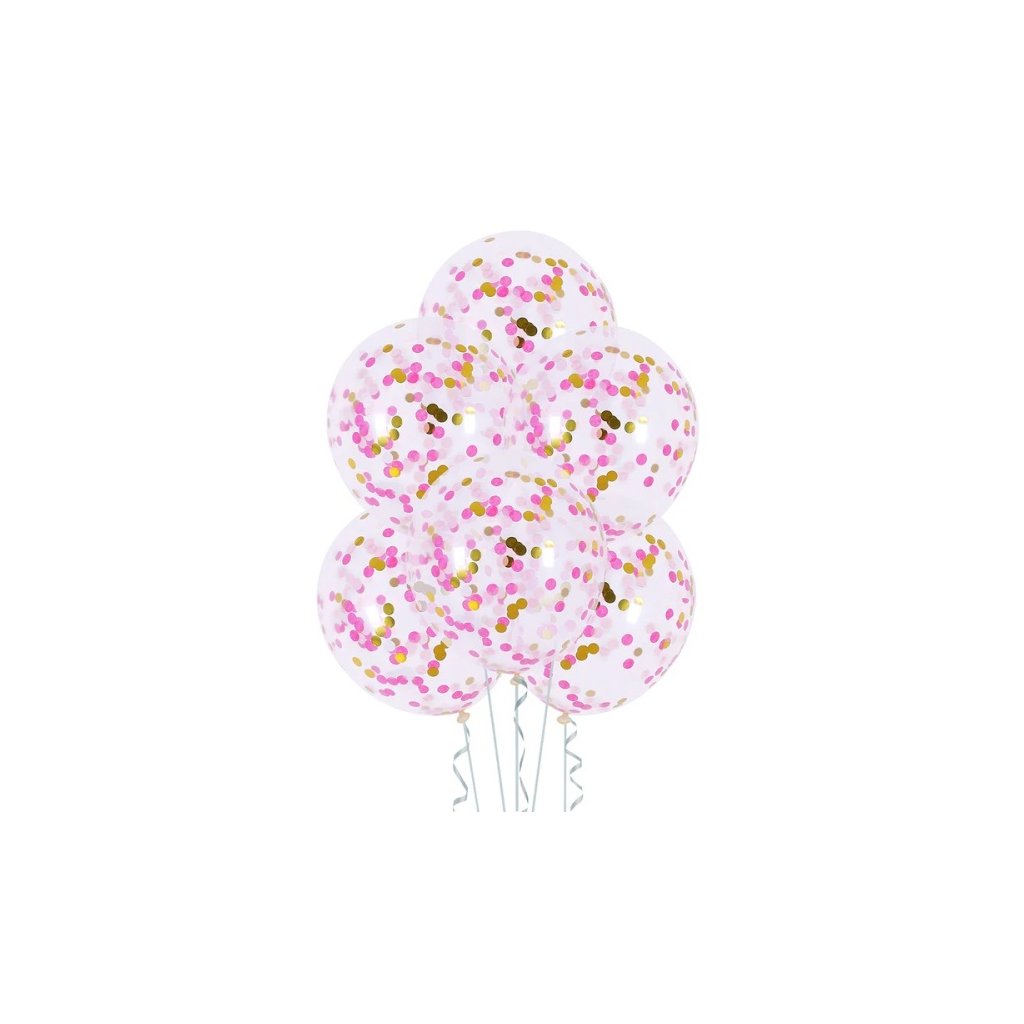 Balónky latexové transparentní s konfetami růžová/zlatá 30 cm 4 ks