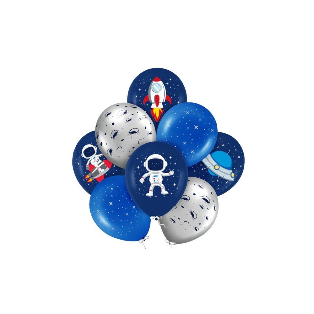 Balónkový buket se skládá z latexových balónků s vesmírnou tématikou. Tento stylový doplněk výzdoby představuje motiv vesmíru, který dokonale zapadne do tematické oslavy pro malé obdivovatele vesmíru. Balení obsahuje 8 ks balónků s potiskem o velikosti 30 cm Balónky lze nafukovat vzduchem i héliem.Doplňkové parametry