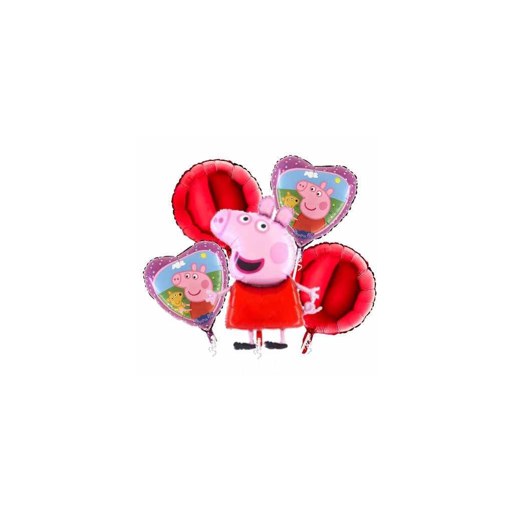 Krásná balónková kytice Peppa Pig se skládá z 5 fóliových balónků. Je jako stvořená na dětskou narozeninovou párty. Set obsahuje 1 x fóliový balónek Peppa, 2 x 45 cm fóliový balónek ve tvaru srdce s prasátkem Peppou, 2 x 45 cm fóliový balónek ve tvaru kruhu. Balónky lze plnit vzduchem i héliemDoplňkové parametry