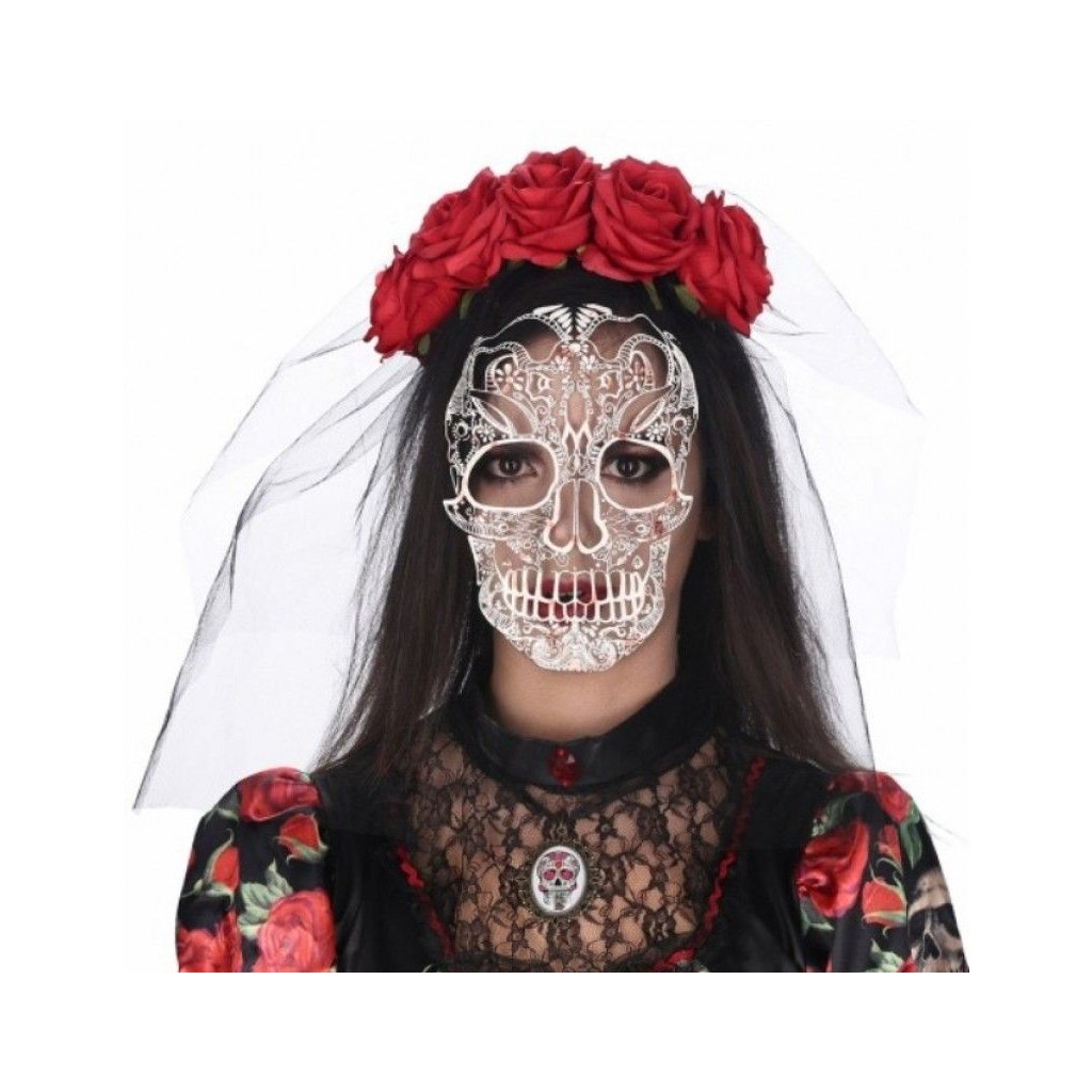 Čelenka Den Mrtvých Vhodný doplněk na gotickou, hororovou nebo halloweenskou párty. Čelenka k mexickému svátku Den mrtvých je ozdobená klasickými rudými růžemi a závojem. Má styl Dia de los muertos, Dia de la muerte. Vhodná na gotickou, hototovou nebo halloweenskou párty. Univerzální velikost pro všechny.Doplňkové parametry