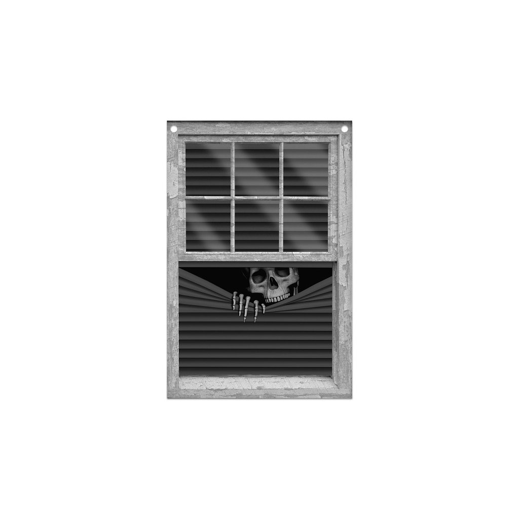 Strašidelná dekorace na okno Halloween S touto dekorací na okně zarfučeně vyděsíte přicházející hosty již u dveří. Závěs má 2 kovová očka pro zavěšení do okna nebo na zeď. Šířka: 80 cm Výška: 120 cm Materiál: polyesterDoplňkové parametry