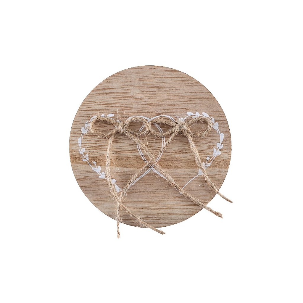 Plánujete netradiční svatbu s ekologickými nebo dřevěnými doplňky? Dřevěná dekorace na prstýnky je svatební novinkou, která krásně doplní ostatní dřevěné doplňky, které na svatbě oceníte. Podložka je kulatá se svatebním vzorem a obsahuje přírodní obrázky k uchycení prstýnků. Po svatbě vám zůstane hezká památka. Nezapomeňte zkompletovat i s ostatními doplňky v tomto styluDoplňkové parametry