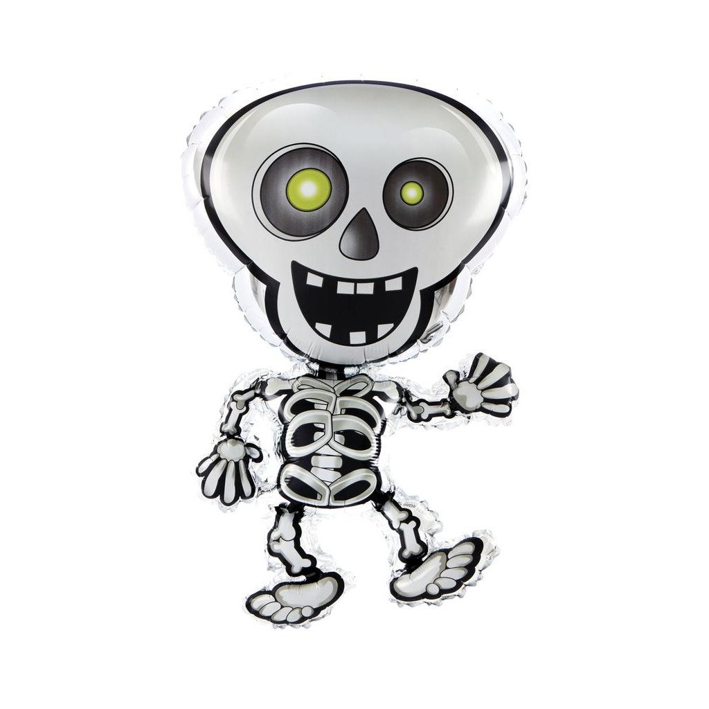 Fóliový balónek ve tvaru kostlivce. Balónek je vyrobený z pevné fólie a velmi vhodným doplňkem Halloweenské oslavy. Velikost 47 x 81 cm Balónek Halloween Skeleton je vhodný k nafouknutí héliem, nebo vzduchem.Doplňkové parametry