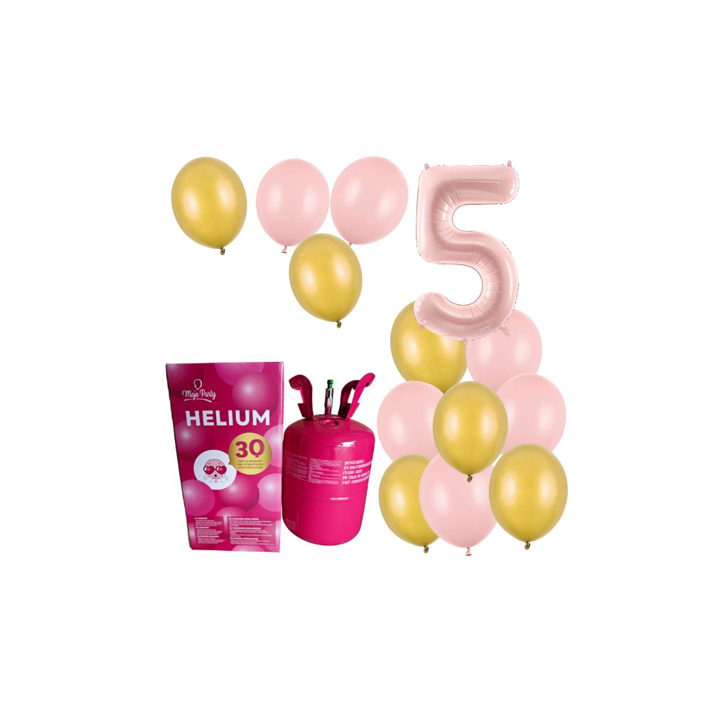 Heliová lahev s balonky pro oslavu pátých narozenin. Vhodná pro jednoduché domácí použití a velká narozeninová překvapení či oslavy s létajícími balonky. Součástí setu helium + balónky najdete vhodnou kombinaci balónků, které vám usnadní výběr a počítání optimální velikosti balónků. Náš narozeninový set potěší každého oslavence. Doporučujeme dokoupit k balónkům i party set ke stolování nebo si vybrat z vhodných doplňků z naší party sekce Navíc ušetříte, protože náš mix je cenově výhodnější než kdybyste si balónky nakupovali samostatněDoplňkové parametry