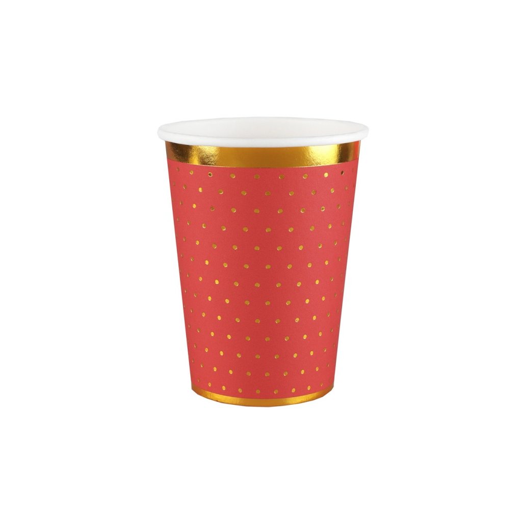 Kelímky v červené barvě s malými zlatými puntíky a zlatým okrajem je elegantním a trendovým doplňkem pro váš slavnostní stůl. Krásné papírové kelímky jsou ideální na všechny vaše večírky a párty v červené barvě nebo oslavu Valentýna či výročí.