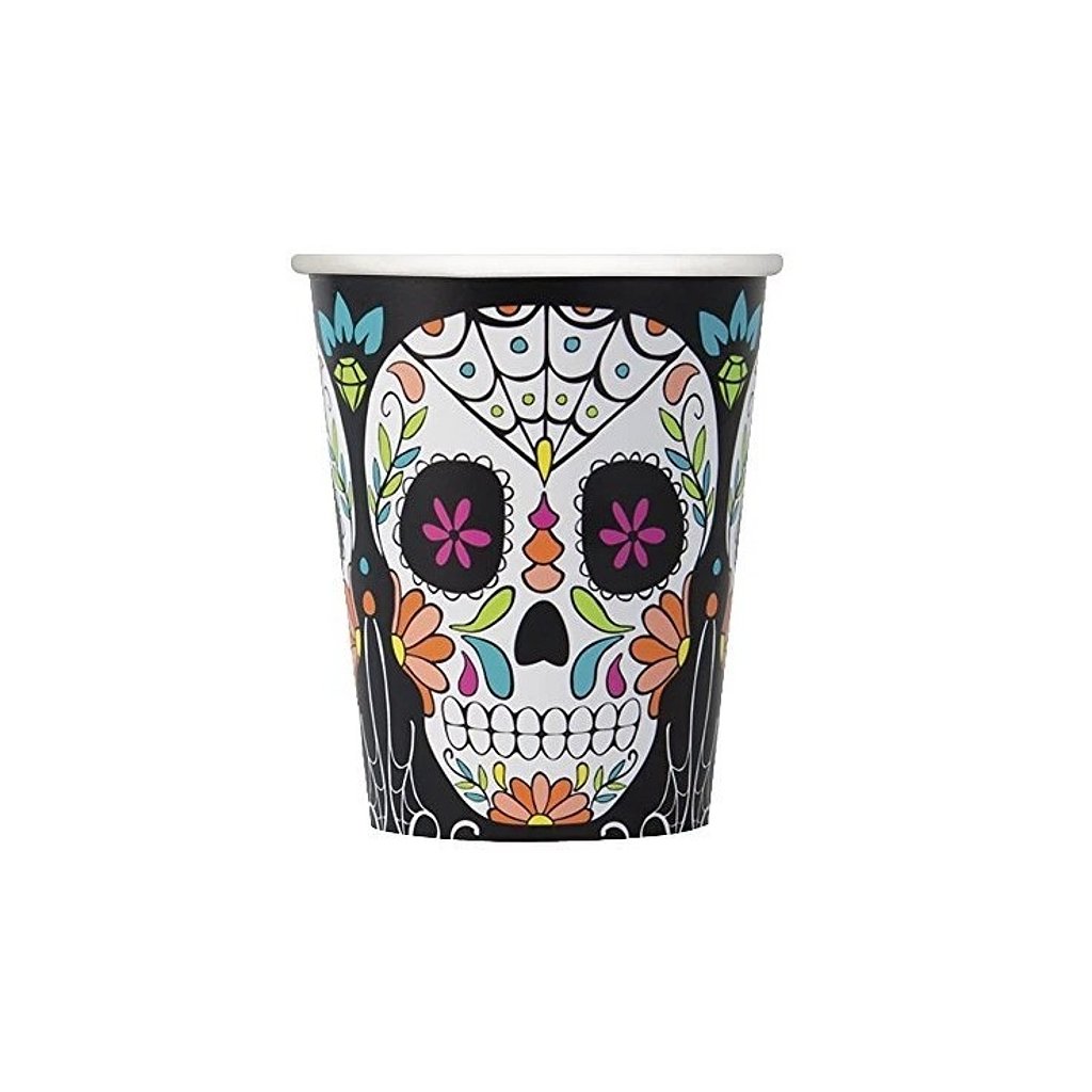 Papírové Halloweenské kelímky s mexickými lebkami Jsou ideálním doplňkem na tématickou oslavu plnou barev, radosti a trochu strašidelné atmosféry. Jejich design je inspirován tradičním mexickým svátkem Día de los Muertos, díky čemuž jsou nejen praktické, ale i dekorativní. S těmito jednorázovými kelímky oživíte každý halloweenský stůl a dodáte mu výjimečný nádech kultury a stylu. Objem 250 ml Balení obsahuje 9 ksDoplňkové parametry