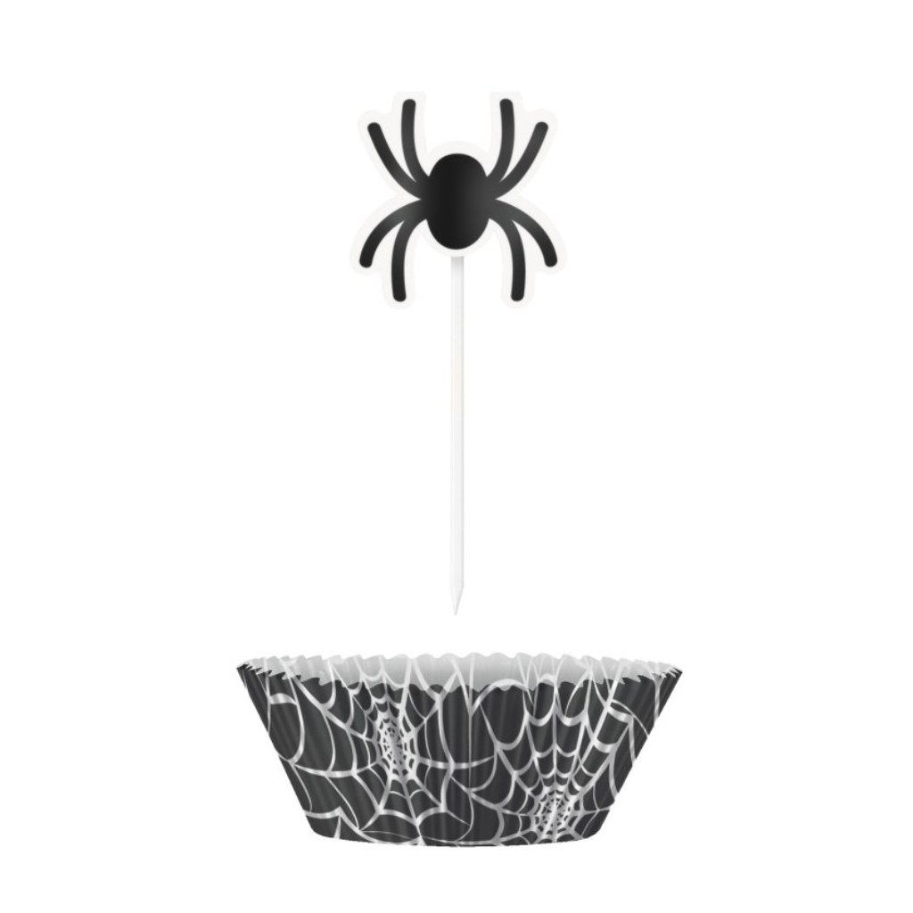 Sada černých košíčků s bílou pavučinou a pavoukem na cupcakes Sada obsahuje 24 košíčků a 24 zápichů s pavoukem. Ideální doplněk na halloweenskou nebo čarodějnickou párty pro děti i dospělé. Vytvořte strašidelně sladký zážitek během pár minut!Doplňkové parametry