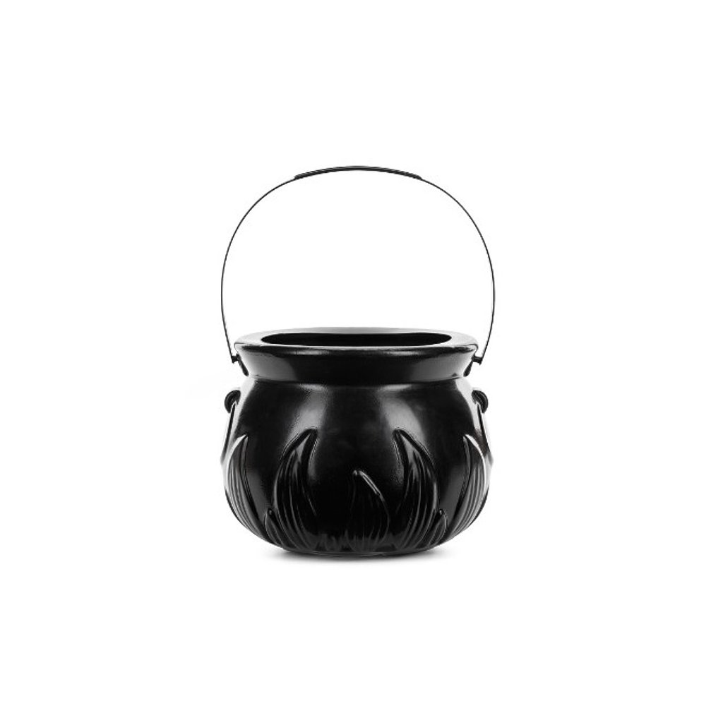Černý plastový kotlík je skvělým doplňkem pro každou halloweenskou výzdobu nebo dětské koledování. Díky madlu se pohodlně nosí a využít ho můžete jako originální nádobu na bonbóny, popcorn nebo malé dárky. Skvěle se hodí také jako dekorační prvek k čarodějnické výzdobě nebo jako součást tematického stolu. Robustní plast zajišťuje opakované použití – ideální volba pro Halloween, dětské oslavy nebo školní akce. Rozměry: 18 x 13 cm (bez ucha), výška s uchem cca 25 cm Materiál: plast Barva: černáDoplňkové parametry