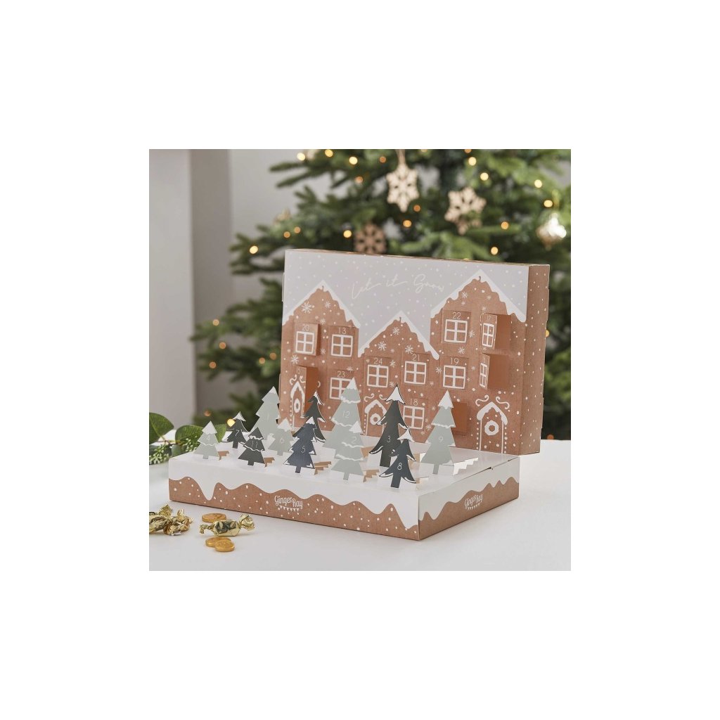 Luxusní kalendář s romantickými papírovými domečky. Tento krásný adventní kalendář vyplňte malými překvapeními nebo dobrotami na každý den. Kalendář vám zároveň ozdobí a připomene krásný předvánoční čas. Adventním kalendářem ozdobíme krbovou římsu nebo dětský pokojík. Balení obsahuje 1 x adventní kalendář o rozměrech 35 x 10 x 22,5 cm 1 x plastový přihrádkový tácek