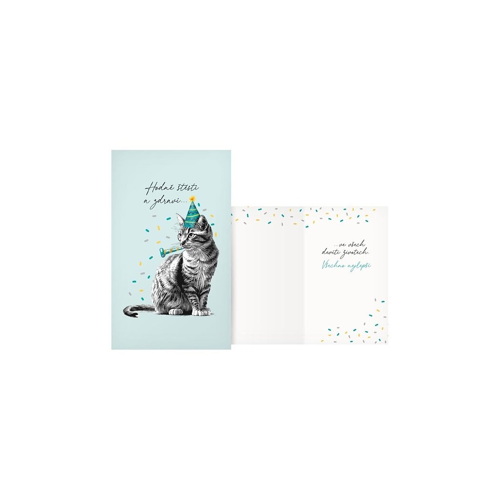 Přání srdečné k narozeninám. Narozeninové přání je s motivem kočičky a textem Hodně štěstí ve všech devíti životech. Oslavy narozenin patří k výjimečným a příjemným okamžikům v životě. A proto potěšte oslavence a spolu s dárkem mu věnujte mu toto originální a krásné přáníčko, které mu bude připomínat tento krásný den. Přání je baleno v sáčku, součástí balení je i dopisní obálka.Doplňkové parametry