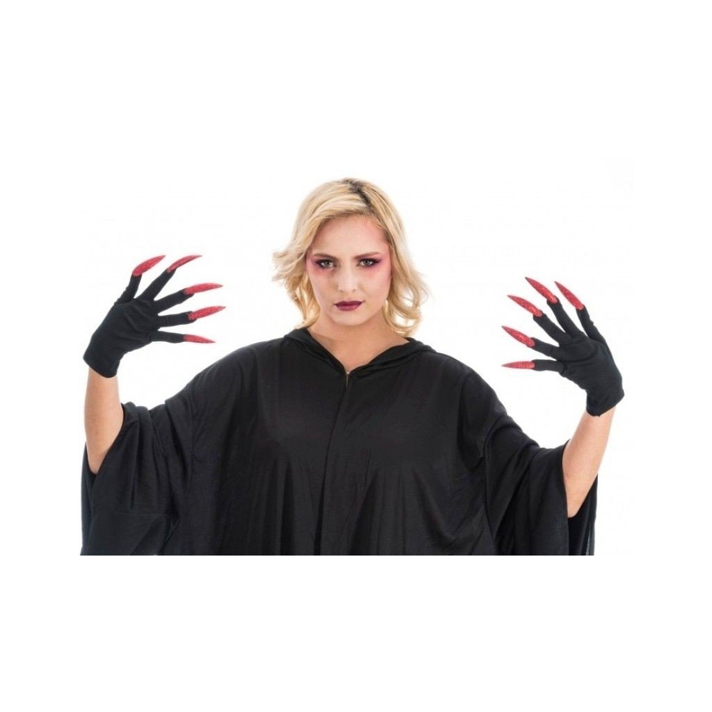 Černé krátké rukavice jsou ozdobené velmi dlouhými červenými třpytivými nehty. Jsou univerzální velikosti a vhodné pro dospělé. Ideální doplněk ke kostýmu pro halloweenskou nebo čarodějnickou párty, kostýmní akce nebo tematické večírky. Ideální pro přidání dramatického prvku do vašeho kostýmuDoplňkové parametry