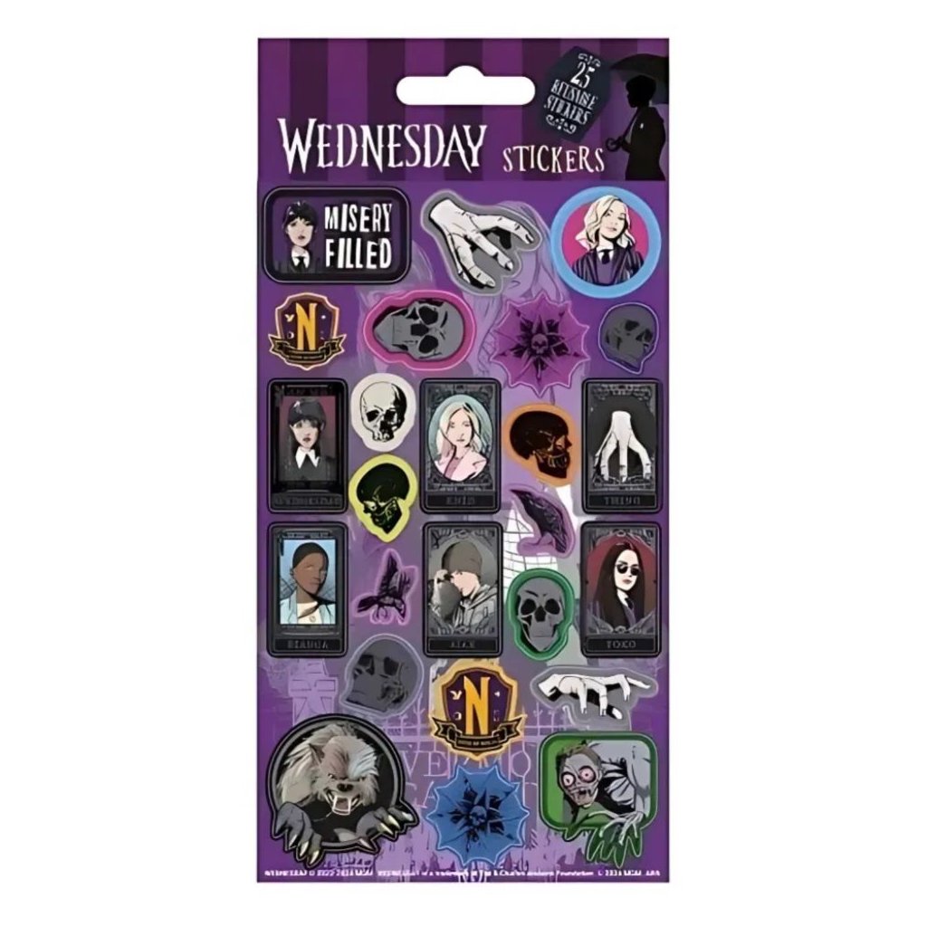 Stylové samolepky s motivy Wednesday a jejího světa Jsou skvělé pro ozdobu sešitů, laptopů i deníků Ideální dárek pro fanoušky Addamsovy rodiny. Samolepky Wednesday (25 ks) přináší dávku temného šarmu pro všechny milovníky gotiky a černého humoru. Najdeš zde ikonické motivy z populárního seriálu, od výrazů hlavní hrdinky až po Nevermore Academy. Jsou vhodné na notebook, mobil, diář nebo školní sešit – prostě všude tam, kde chceš dát najevo, že temnota ti sluší.Doplňkové parametry