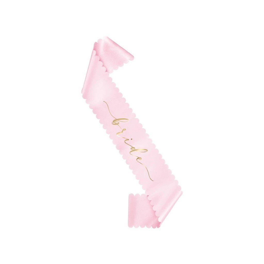 Růžovozlatá šerpa Bride S touto krásnou vroubkovanou šerpou se každá budoucí nevěsta bude cítit výjimečně. Je růžové barvy se zlatým nápisem. Šerpa je skvělý tip na rozlučku se svobodou Délka 160 cm Balení obsahuje 1 kusDoplňkové parametry