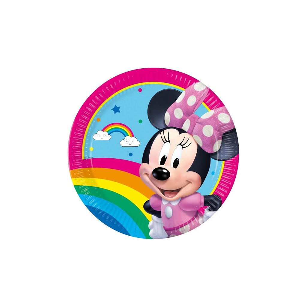 Talířky papírové s rozkošnou myškou s růžovou mašlí Minnie a barevnou duhou jsou ten nejlepší doplněk stolování narozeninové oslavy s touto roztomilou myškou. Talířky jsou jednorázové, praktické a zaručují rychlý úklid po oslavě. Průměr : 23 cm Balení obsahuje 8 ksDoplňkové parametry