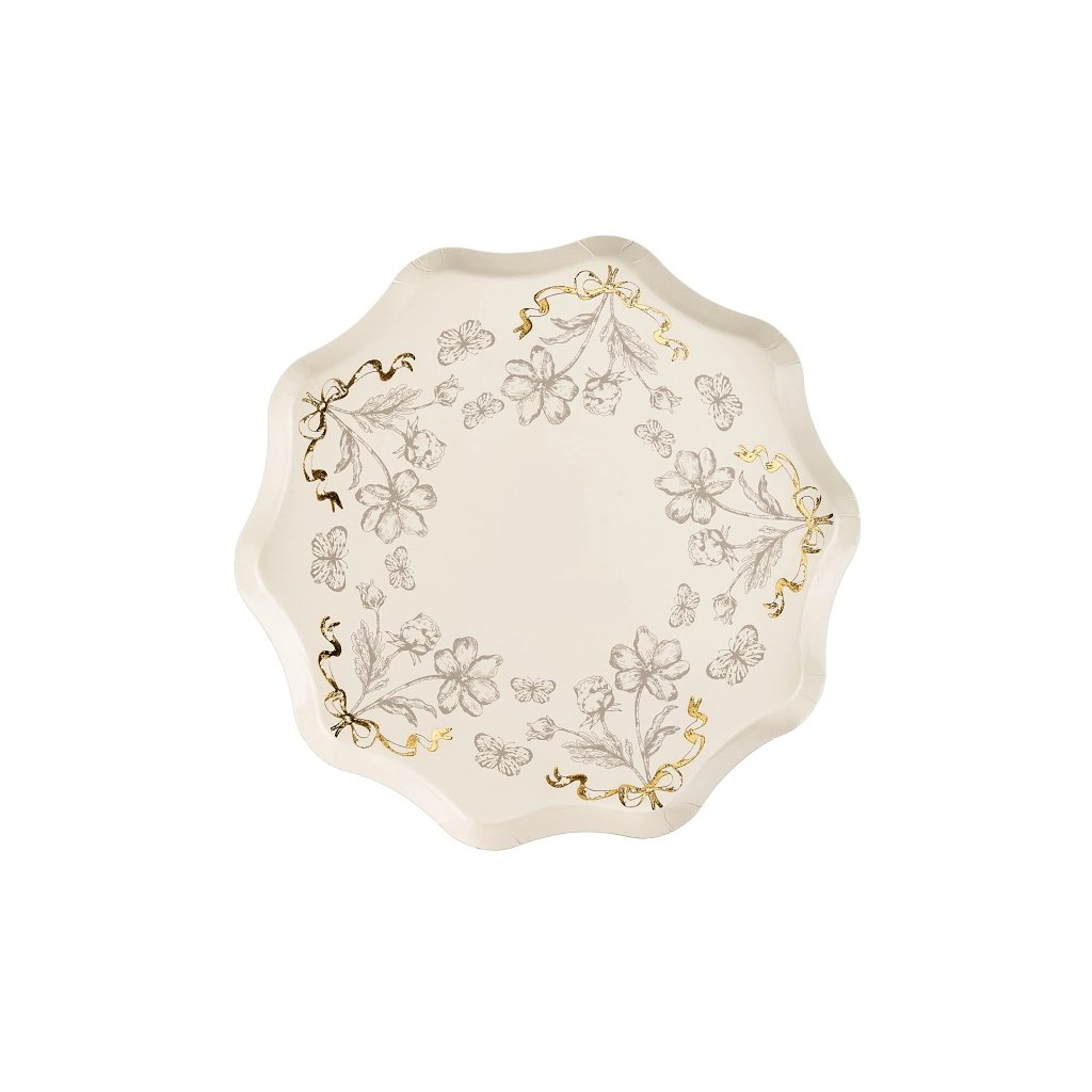 Talířky papírové béžové s květinovým potiskem 20 cm 6 ks