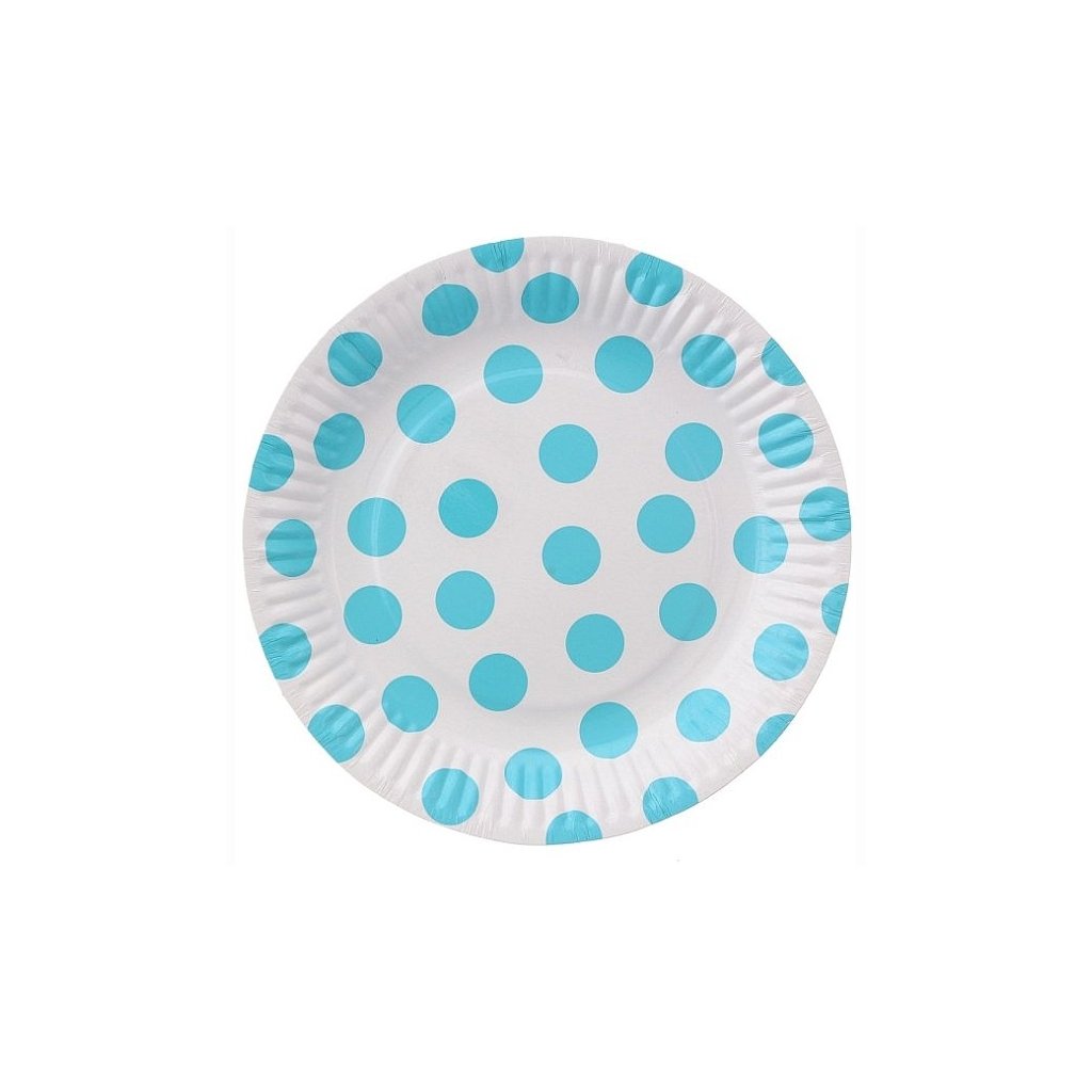 Papírové talířky s puntíky na každou barevnou party. Užijte si barevnou pohodu a kombinujte s ostatními talířky i v jíné barvě. azurové 6 ks 18 cmDoplňkové parametry