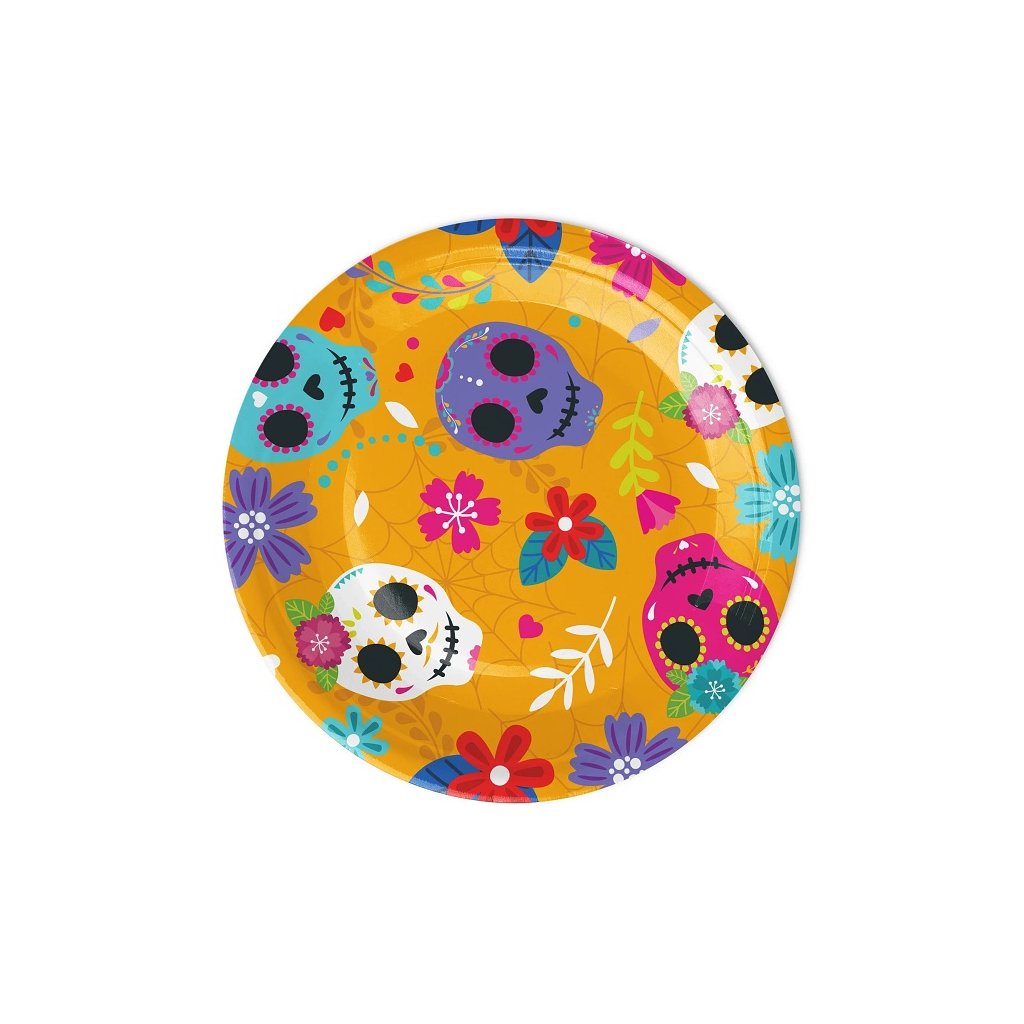 Talířky papírové s mexickými lebkami 18 cm 6 ks