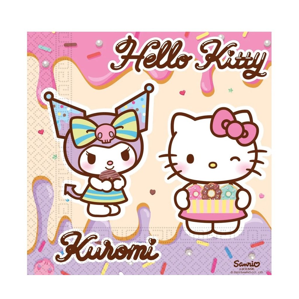 Ubrousky papírové Hello Kitty & Kuromi 33x33 cm 20 ks