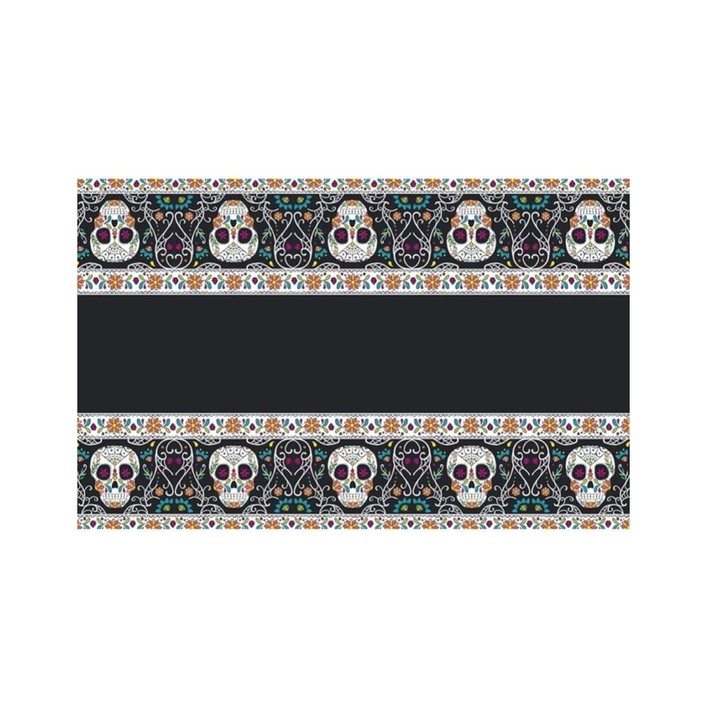 Plastový ubrus černý Mexické lebky Tento praktický ubrus je ideálním doplňkem na tématickou oslavu plnou barev, radosti a trochu strašidelné atmosféry. Jeho design je inspirován tradičním mexickým svátkem Día de los Muertos, díky čemuž je velmi barevný a dekorativní. S tímto doplňkem oživíte každý halloweenský stůl a dodáte mu výjimečný nádech kultury a stylu. Rozměr: 130 x 120 cmDoplňkové parametry